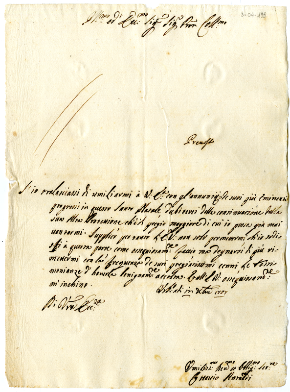 Lettera di Ottavio Antaldi ad Annibale Albani (1707 dicembre 13)