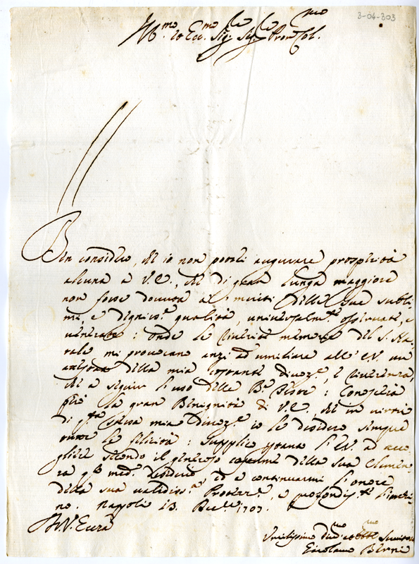 Lettera di Girolamo Berni ad Annibale Albani (1707 dicembre 13)