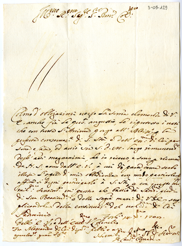 Lettera del cavaliere Tignano ad Annibale Albani (1708 dicembre 14)