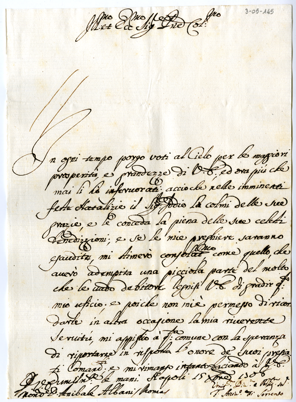 Lettera di Filippo arcivescovo di Sorrento ad Annibale Albani (1708 dicembre 15)