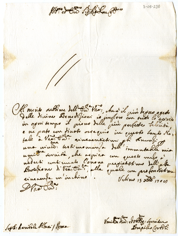 Lettera di Pompilio Corboli ad Annibale Albani (1708 dicembre 15)
