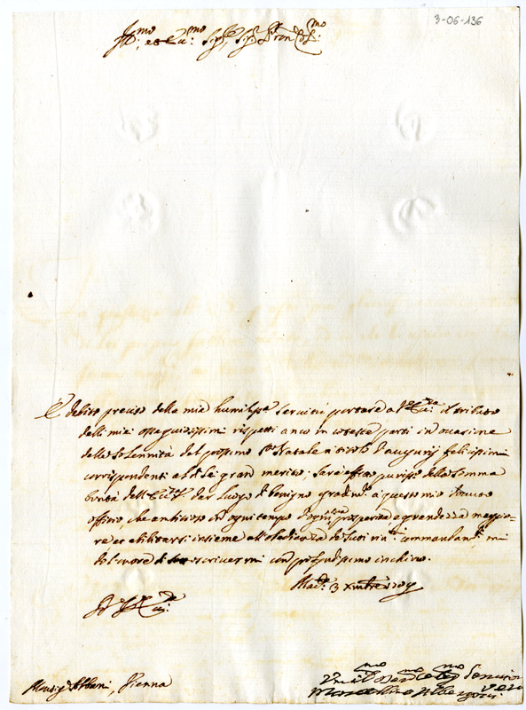 Lettera di Marcellino Albergotti ad Annibale Albani (1709 dicembre 3)