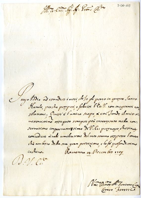 Lettera di Cesare Ferretti ad Annibale Albani (1709 dicembre 4)