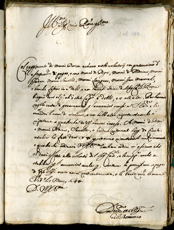 Lettera di Barberini Taddeo a Malatesta Albani (1644 marzo 7)