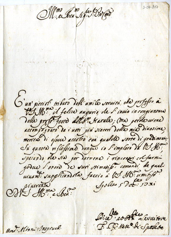 Lettera del vescovo di Spoleto ad Annibale Albani (1711 dicembre 5)