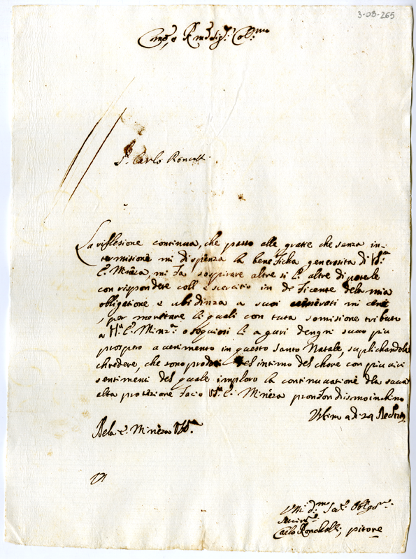 Lettera di Carlo Roncalli al cardinale Annibale Albani (1712 dicembre 24)
