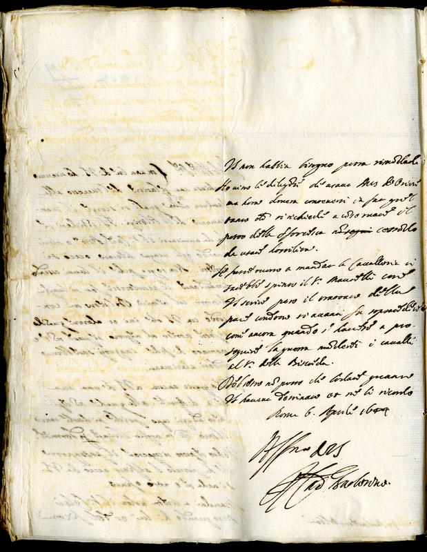 Lettera del cardinale Barberini Francesco senior a Malatesta Albani (1644 aprile 6)