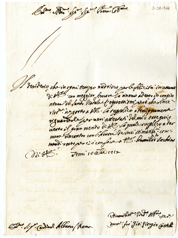 Lettera di fra Giovanni Giorgio Castelli al cardinale Annibale Albani (1712 dicembre 10)