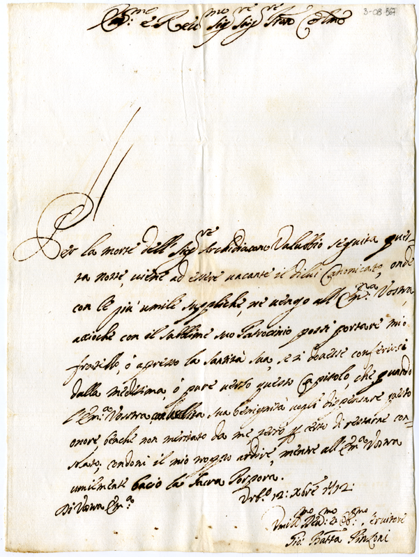 Lettera di Giovanni Battista Pinzoni al cardinale Annibale Albani (1712 dicembre 12)
