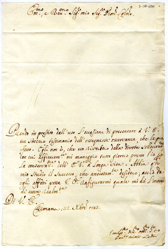 Lettera di Nicolò Lodi al cardinale Annibale Albani (1712 dicembre 22)