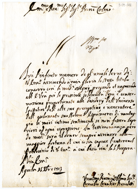 Lettera di Camillo cavaliere Benedetti al cardinale Annibale Albani (1713 dicembre 25)