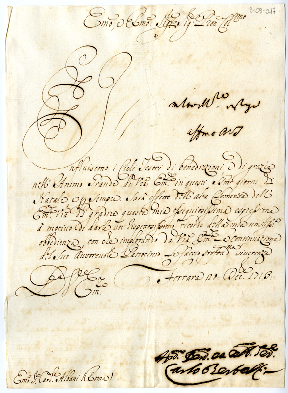 Lettera di Carlo Bertelli al cardinale Annibale Albani (1713 dicembre 20)