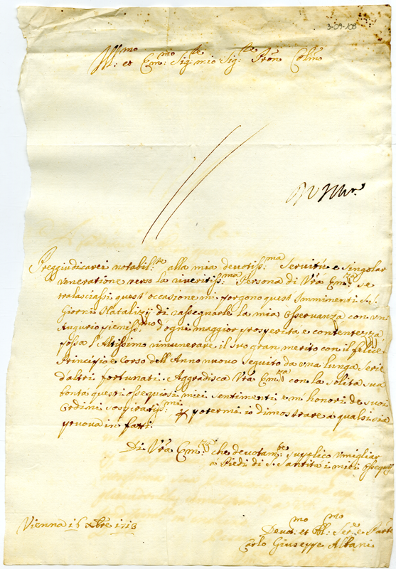 Lettera di Carlo Giuseppe Albani al cardinale Annibale Albani (1713 dicembre 16)