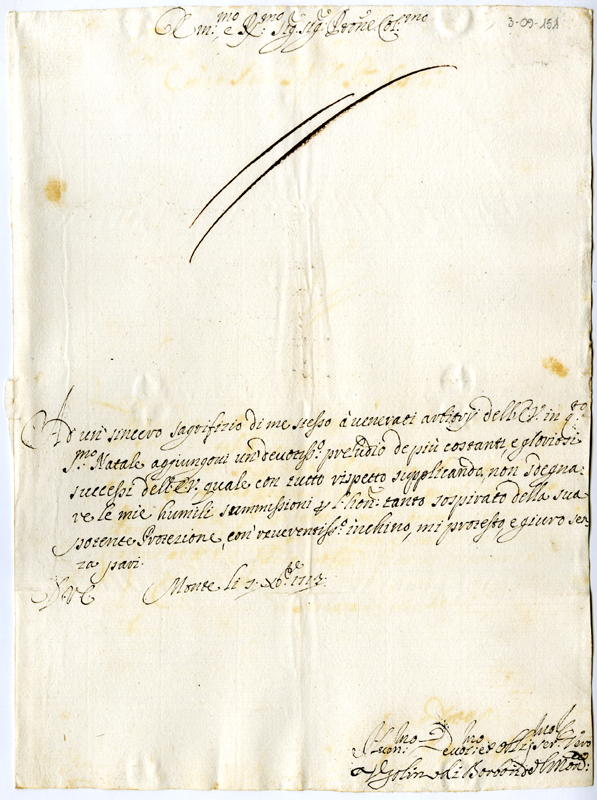 Lettera di Golino di Borbon del Monte al cardinale Annibale Albani (1713 dicembre 7)