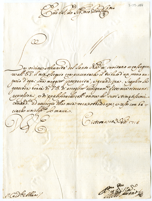 Lettera al cardinale Annibale Albani (1713 dicembre 12)