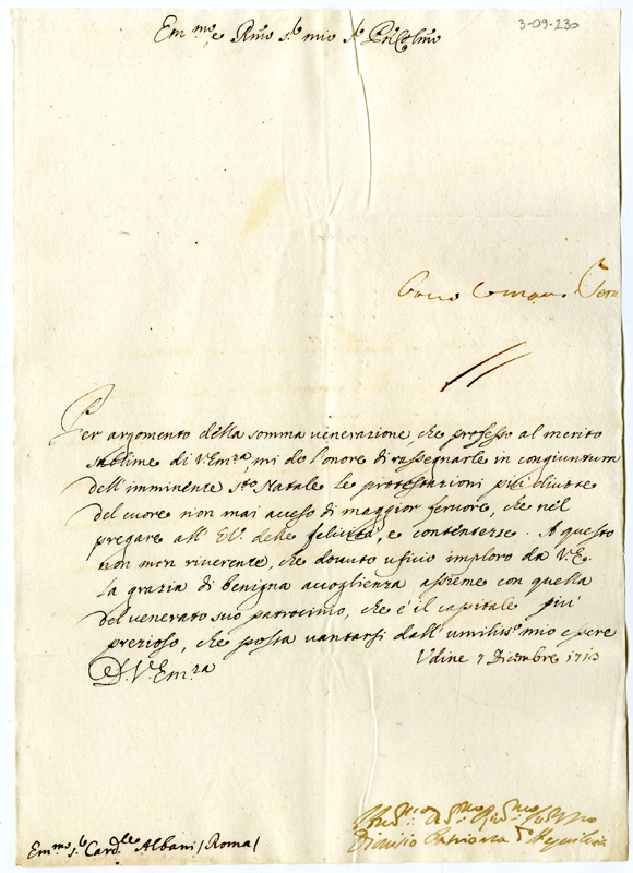 Lettera di Dionisio patriarca di Aquileia al cardinale Annibale Albani (1713 dicembre 7)