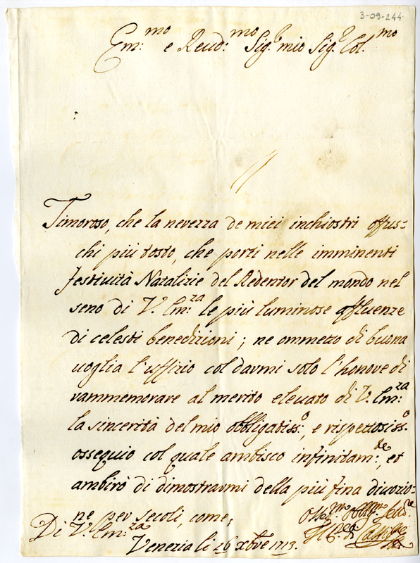 Lettera del principe di Castiglione al cardinale Annibale Albani (1713 dicembre 16)