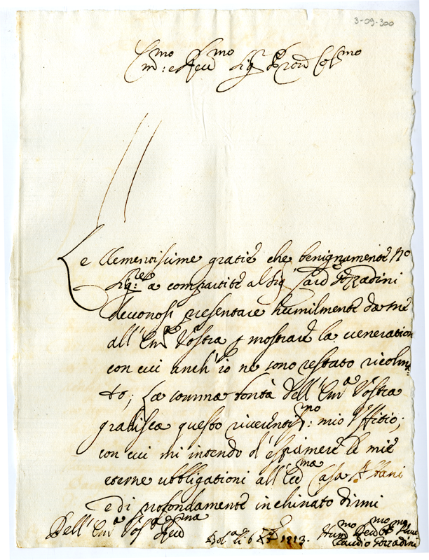 Lettera di Claudio Gorradini al cardinale Annibale Albani (1713 dicembre 6)