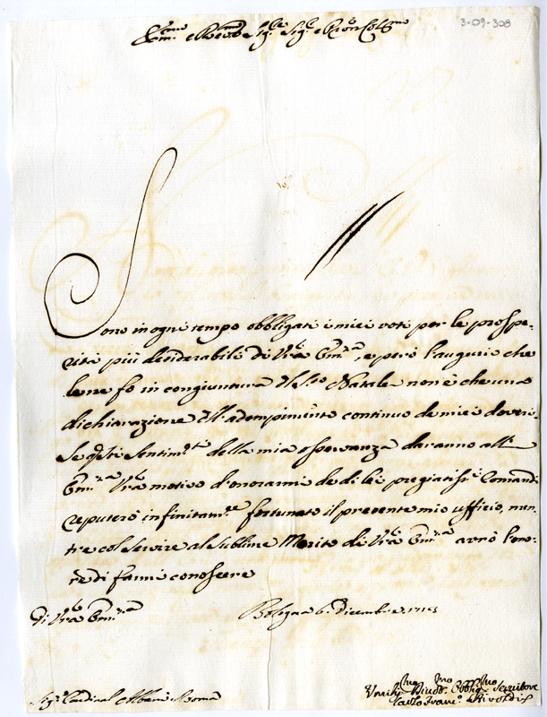 Lettera di Carlo Francesco Airoldi al cardinale Annibale Albani (1713 dicembre 6)