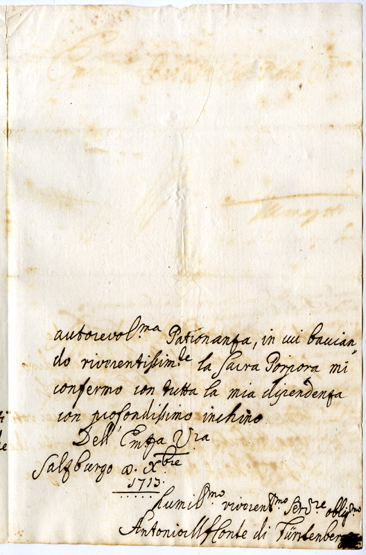 Lettera di Antonio conte di Furstemberg al cardinale Annibale Albani (1713 dicembre 8)