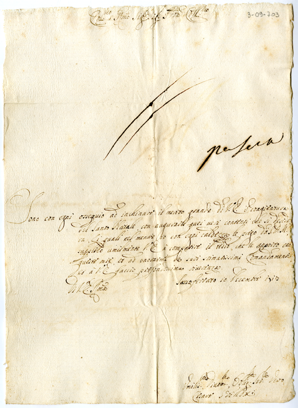 Lettera di Cesare Grillotti al cardinale Annibale Albani (1713 dicembre 10)