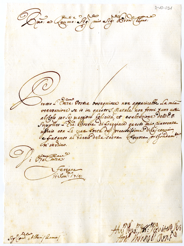 Lettera di Antonio Varano al cardinale Annibale Albani (1715 dicembre 11)
