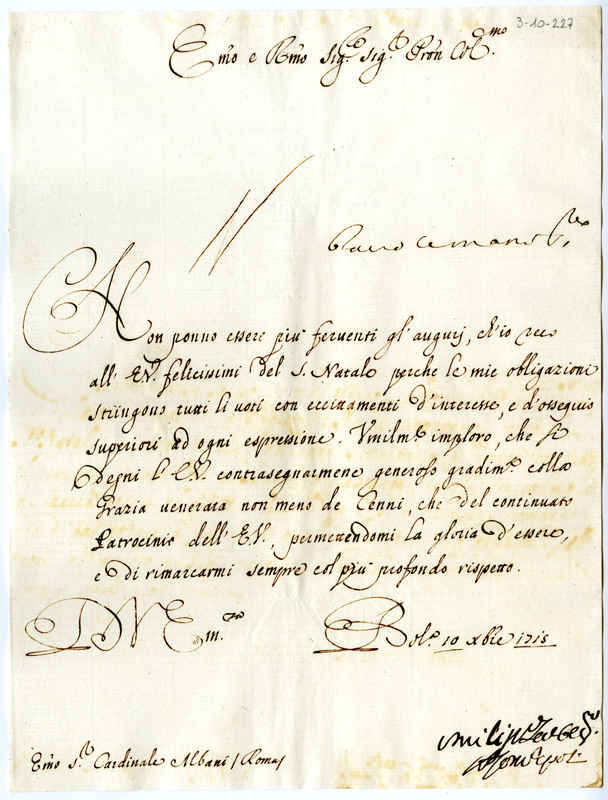 Lettera di Pepoli al cardinale Annibale Albani (1715 dicembre 10)