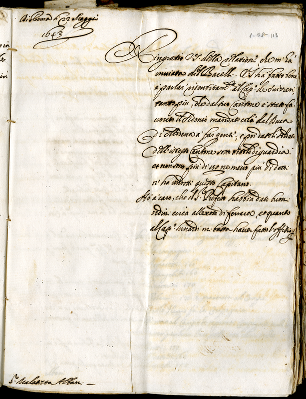 Lettera del cardinale Barberini Francesco senior a Malatesta Albani (1643 maggio 22)