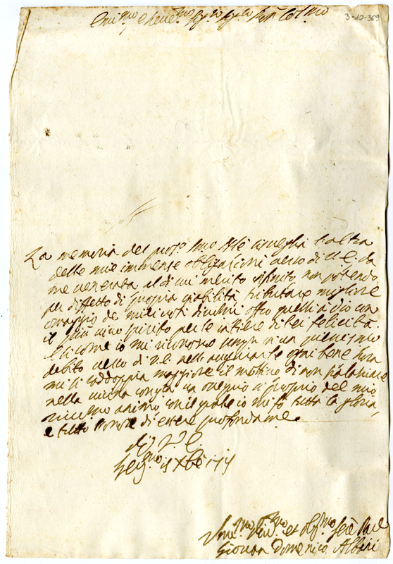 Lettera di Giovan Domenico Albani al cardinale Annibale Albani (1715 dicembre 18)