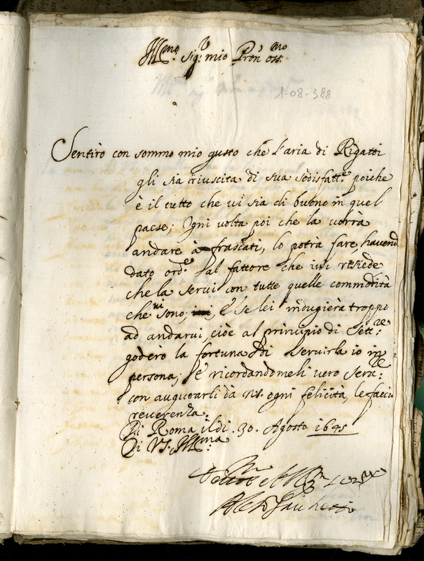 Lettera di Fanchetti Alessandro a Malatesta Albani (1645 agosto 30)