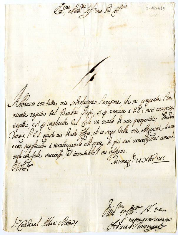 Lettera del duca di Torre Maggiore al cardinale Annibale Albani (1715 dicembre 14)