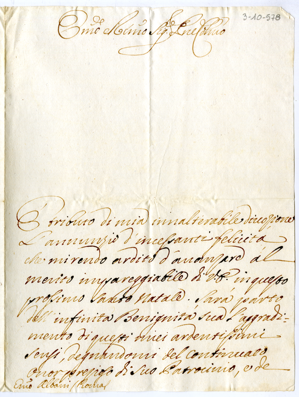 Lettera di Scipione Diotallevi al cardinale Annibale Albani (1715 dicembre 20)