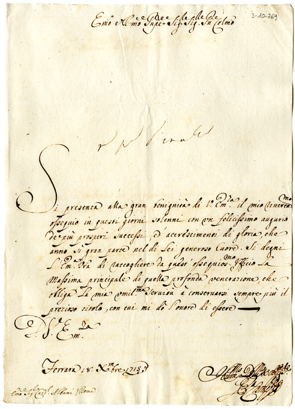 Lettera al cardinale Annibale Albani (1715 dicembre 18)