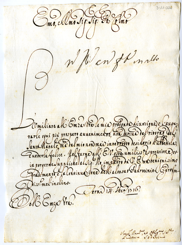 Lettera di Ludovico Soderini al cardinale Annibale Albani (1716 dicembre 14)