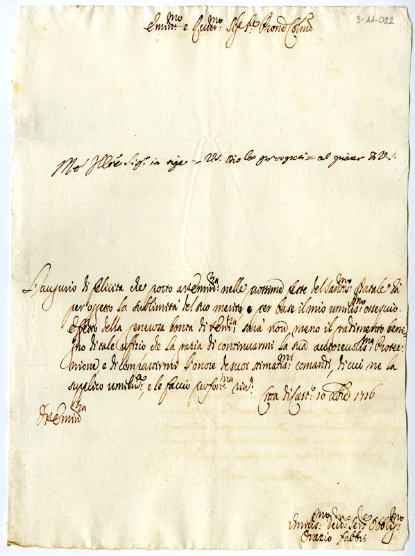 Lettera di Orazio Fabbri al cardinale Annibale Albani (1716 dicembre 10)