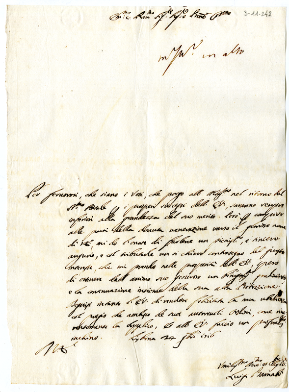 Lettera di Luigi Barnabò al cardinale Annibale Albani (1716 novembre 24)