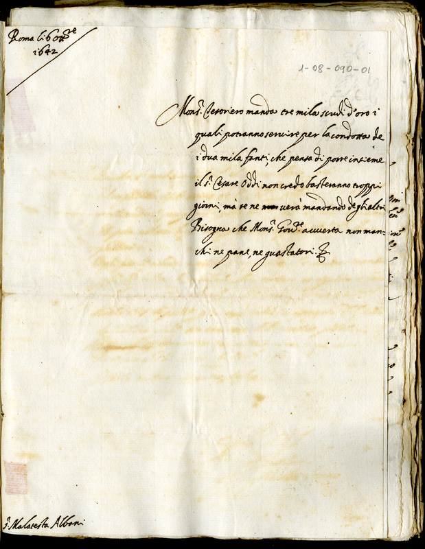 Lettera allegata del cardinale Barberini Francesco senior a Malatesta Albani (1642 ottobre 6)