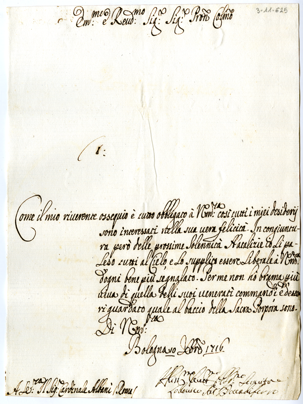 Lettera di Ludovico Antonio Boccadiferro al cardinale Annibale Albani (1716 dicembre 10)