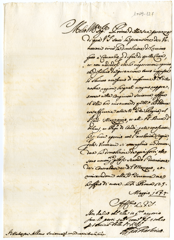 Lettera del cardinale Barberini Francesco senior a Malatesta Albani (1644 maggio 25)