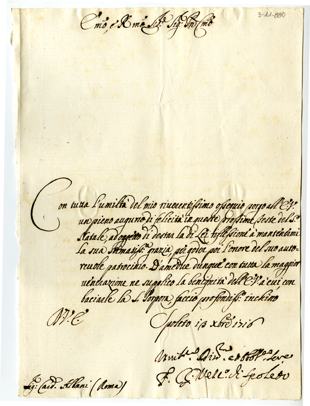 Lettera di Carlo Giacinto vescovo di Spoleto al cardinale Annibale Albani (1716 dicembre 13)