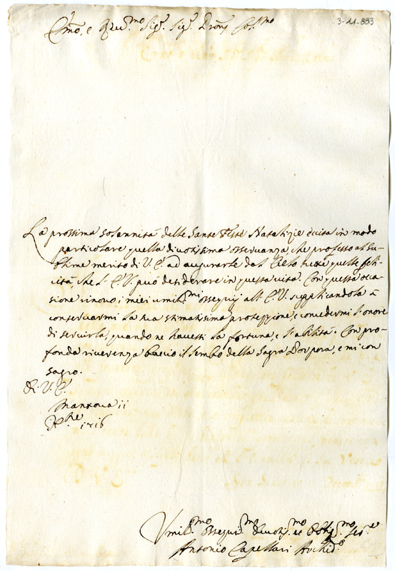 Lettera di Antonio Capellari al cardinale Annibale Albani (1716 dicembre 11)