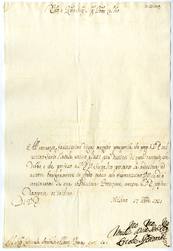 Lettera di Ercole Sfondrati al cardinale Annibale Albani (1725 dicembre 17)