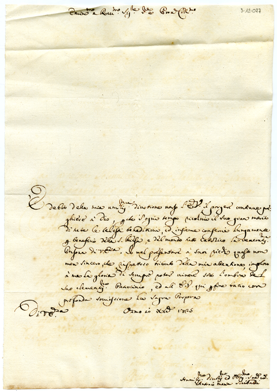 Lettera di Antonio Maria Sinibaldi al cardinale Annibale Albani (1725 dicembre 10)