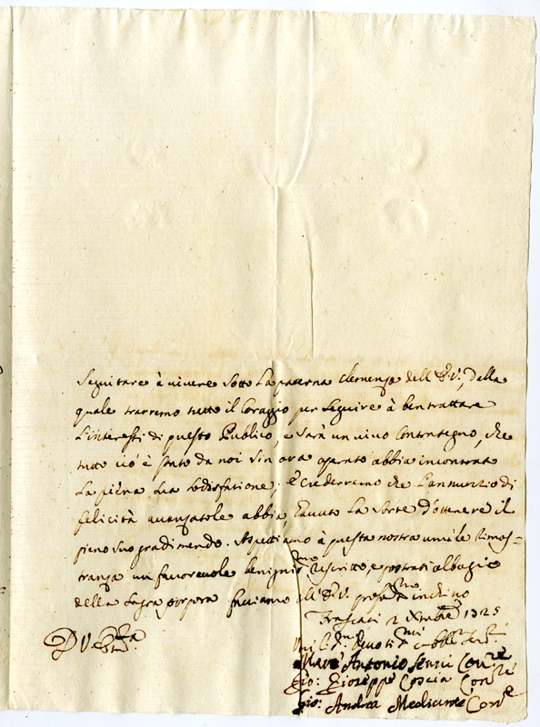 Lettera dei gonfalonieri di Frascati al cardinale Annibale Albani (1725 dicembre 2)
