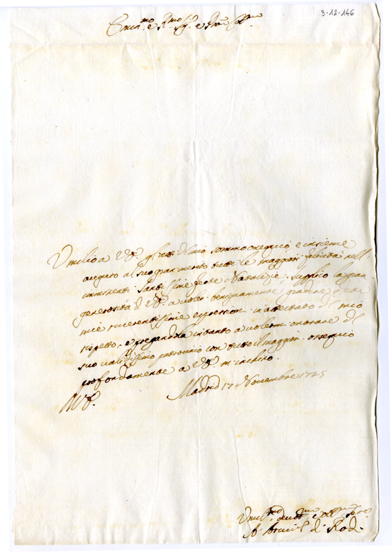 Lettera dell'arcivescovo di Rodi al cardinale Annibale Albani (1725 dicembre 17)