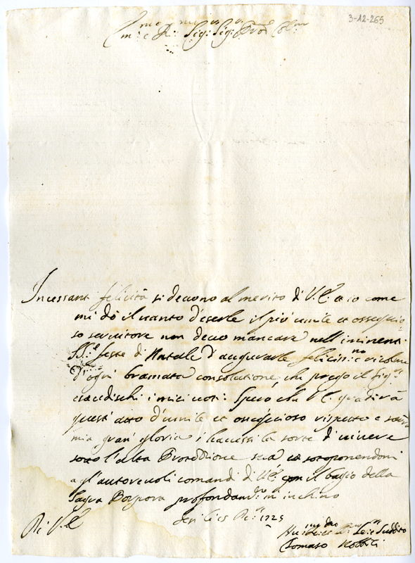 Lettera di Tommaso Nobili al cardinale Annibale Albani (1725 dicembre 15)