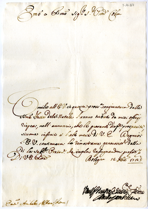 Lettera di Aurelio Zambeccari al cardinale Annibale Albani (1725 dicembre 15)