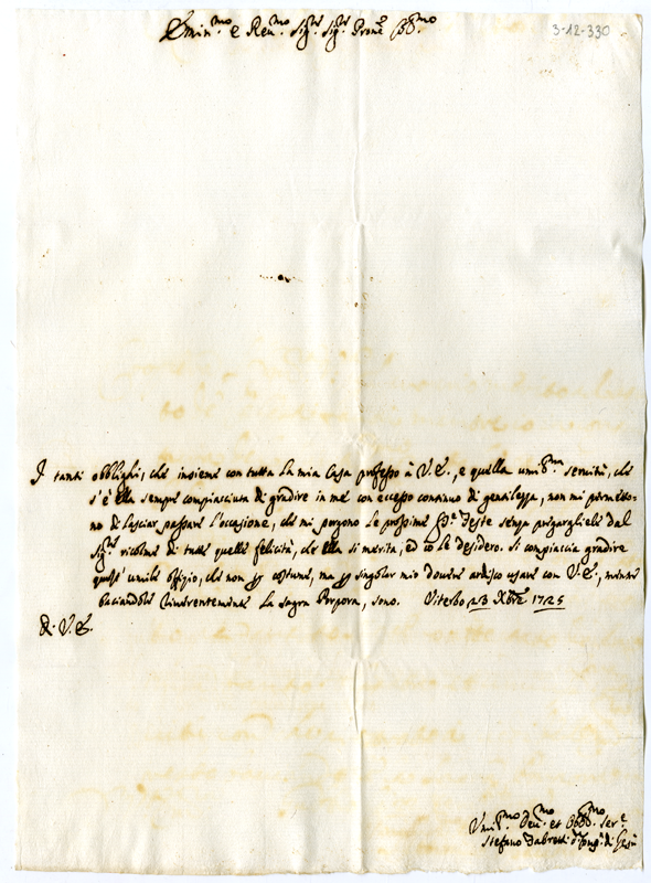 Lettera di Stefano Fabretti gesuita al cardinale Annibale Albani (1725 dicembre 23)