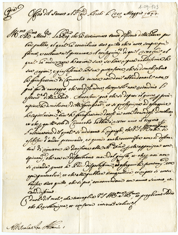 Offitio del Senato al Signor Cardinale Bichi li 28 Maggio 1644