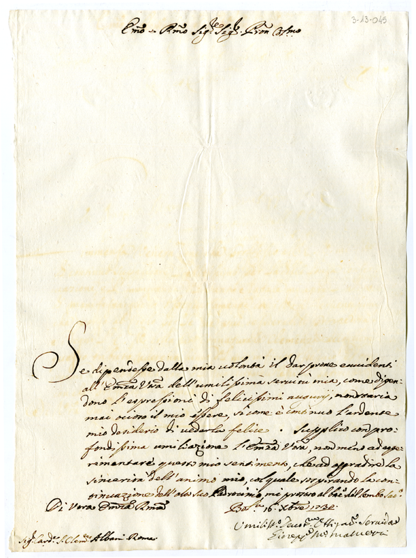 Lettera di Emilio Travaglini al cardinale Annibale Albani (1730 dicembre 13)